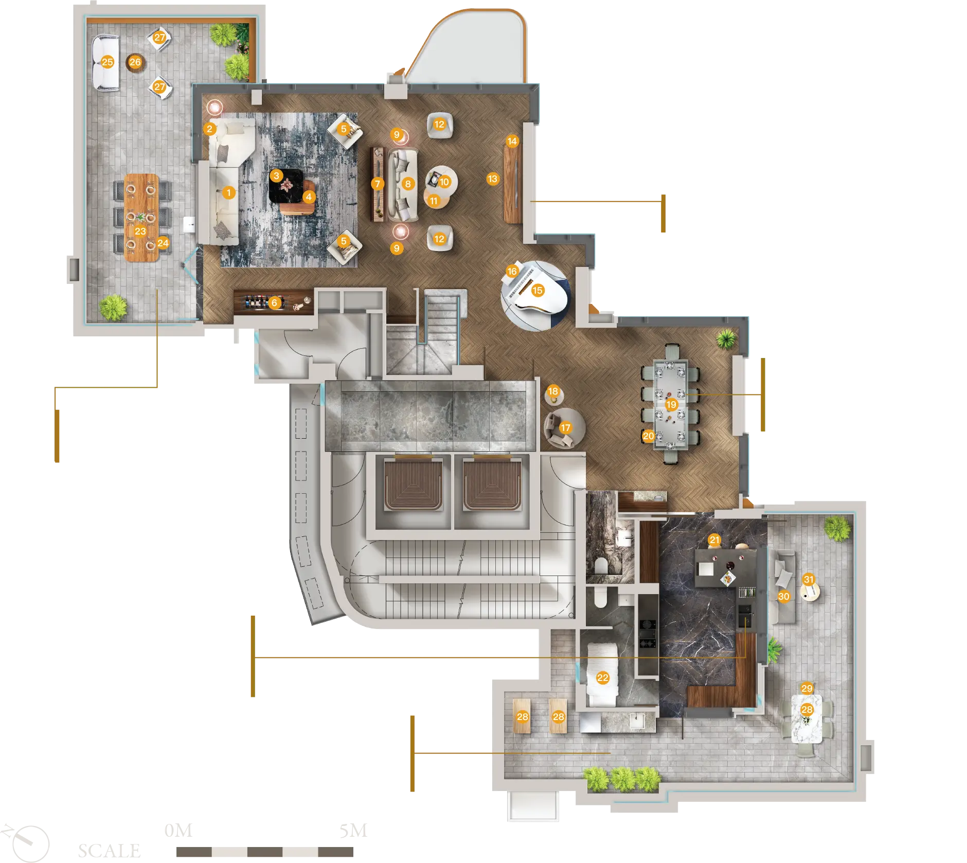 2. 卖方保留权利按买卖合约规定改动建筑图则,以修改发展项目、住宅单位或其任何部份之设计、布局及设计用途,及/或住宅单位及/或康乐设施及/或其任何部份之实用面积、单位面积、单位户型和编号。平面图展示的设计、布局及设施仅供参考,一切资料以有关政府部门最后批准之图则为准,且受制于买卖合约之条款。平面图并不构成亦不应诠释为卖方对发展项目及/或其任何部分作出任何不论明示或隐含的要约、陈述、承诺、保证或合约条款。详情请参阅售楼说明书。