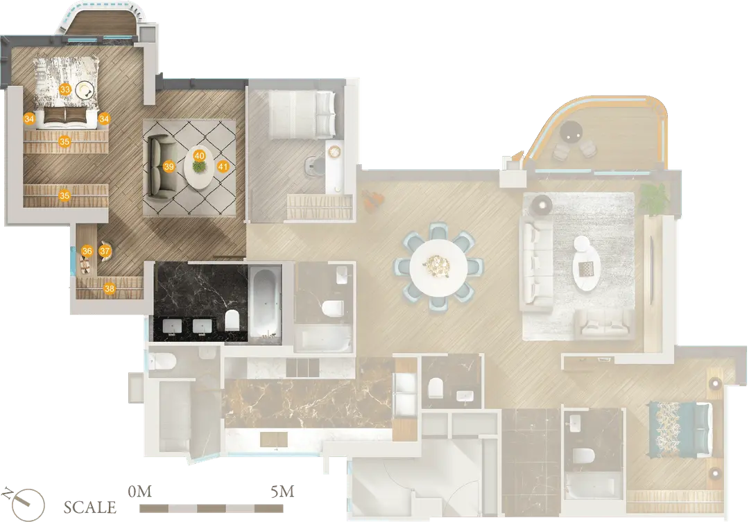 以上设计概念图经电脑修饰简化处理及不按比例绘画为设计师对发展项目个别单位之想像并非在发展项目拍摄并不反映发展项目或其任何部份的真实内外景观。图内显示的设施、布局、间隔、规格、尺寸、用料、装置、装修物料、设备、摆设、灯饰、家私、颜色及其他物件等仅供参考未必在实际落成发展项目内或其附近范围出现亦非交楼标准一切以买卖合约条款作准。设计概念图内所显示的窗外景观模拟发展项目建成后之住宅单位的大约外望景观并非作展示个别单位之实际景观。单位所享有之景观受其座向、楼层、周边建筑物及环境所影响并不适用于所有单位。卖方保留一切权利不时改动发展项目的建筑图则及其他图则惟发展项目之设计及建筑图则须以政府相关部门最后批准之图则为准。准买家切勿依赖该等概念图作任何用途或目的。它们并不构成或不得诠释成卖方就发展项目或其任何部分或其四周的环境、景观及设施(不论明示或隐含)之要约、陈述、诺言、承诺或保证。详情请参阅售楼说明书。有关概念图中显示之各项电子设备、厨房及/或浴室设备只适用于部分单位详情请参阅售楼说明书并以售楼说明书为准惟部分设备因应《一手住宅物业销售条例》所限而未有在售楼说明书上清楚列明其产品名称。